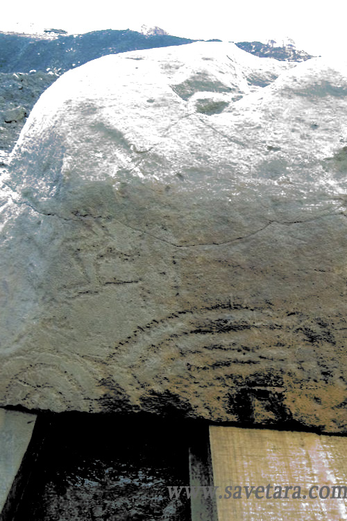often lined with such flagstones. There is also rock art and it has two