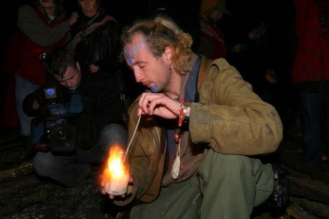 around Tara. The drumming and chanting continued around the fire.