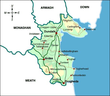 Dundalk follow the N52 and then the R171 towards Knockbridge/Louth. The