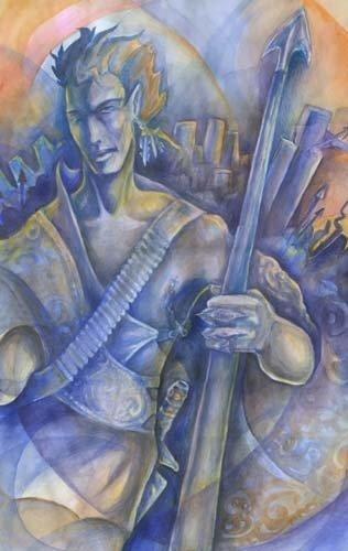 ![]() Aillinn, daughter of Laoghaire Mac Fergus Fairge (some say her father was Eoghan Mac Daithi), grand daughter of the King of Leinster, lived a long time ago. Her life was blessed and simple, until she fell in love with a young man by the name of Baile. Baile was the son of Buain, and just happened to be the heir to the kingdom of Ulster. In those days, Leinster and Ulster were the greatest and bitterest of enemies. So, the two had to keep their love for one another secret, lest one of their fathers or grandsires hear of the doomed relationship. Trying to cheat fate, the two lovers planned a secret asignation. They planned to meet each other on the shore new Dun Dealgan, also called Dundalk. Baile arrived first and was met by a stranger who told him that Leinster warriors had found them out and stopped Aillinn's journey. He told Baile that Aillin had died from the grief of not being able to come to him. The stranger then returns to Aillin and tells her of Baile's death. She promptly drops dead with grief. The mysterious stranger is said to be none other than one of the Gods! (although they do not say which). Personally, I think it was Amadan Dubh, the "Fairy Fool" or "Dark Fool". Who else would do such a wicked thing?! Baile was buried at Traigh mBaile and from his grave a Yew tree grew. From Aillinn's grave an Apple tree grew. Legend has it that the poets from both Leinster and Ulster cut a branch from each of the trees. From those branches they made wands, and on those wands they carved the tragedy in Ogham (the earliest form of Irish writing). Avatar from: |