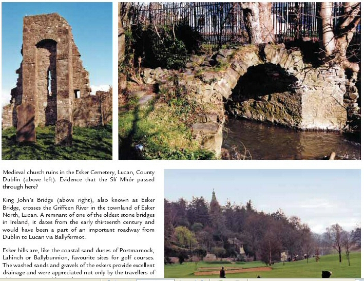 Medieval church ruins in the Esker Cemetery, Lucan, County Dublin (above left). Evidence that the Slí Mhór passed through here?